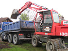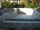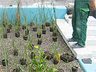 (Für eine Großansicht bitte in die Bilder klicken) Schon kurze Zeit später rollte der grosse Bagger an und verwandelte zunächst alles in eine Baustelle. Das Schwimmbecken wurde mit senkrechten Wänden gestaltet, damit es sicher benutzt werden kann und pflegeleicht bleibt. Nachdem die Folie eingeschweisst war konnte bereits der Pflanzenfilter eingebaut werden. Hier muss sehr sorgfältig gearbeitet werden um eine zuverlässige Reinigung des Wassers zu erreichen.