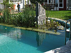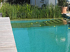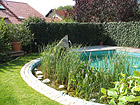 (Für eine Großansicht bitte in die Bilder klicken) Im Frühjahr und Herbst wird der Filter rückgespült. Das heisst, die Nährstoffe, die während der Badesaison im Filter angereichert wurden werden gelöst und mit einer geringen Wassermenge entnommen. Und schon ist der Teich für die nächste Badesaison gerüstet…. Unsere Teiche werden technisch so gebaut, dass ein dauerhafter Nährstoffeintrag aus der Umgebung ausgeschlossen werden kann. Sollte dennoch einmal ein Unglück passieren und Nährstoffe durch belastetes Wasser, ungeeigneten Rasendünger, Einbringen von Erde oder ähnliches eingetragen werden, so zeigt es der Teich sehr schnell mit einem Algenwachstum. Aber auch für solche Fälle sind wir gerüstet und können schnelle Abhilfe schaffen. Für die Benutzer der Terrasse wurde ein leise plätschernder Quellstein in der Pflanzzone platziert. Dieser kann nach Belieben ein- und ausgeschaltet werden. Damit der Garten auch bei Nacht seinen Reiz nicht verliert gibt es Beleuchtung im Teich und dezente Stimmungsleuchten in der umgebenden Pflanzung. |
